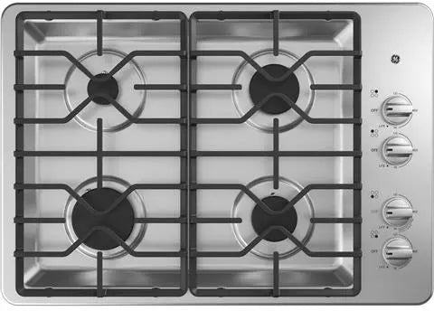 30 Inch Gas Cooktop with 4 Sealed Burners, Dishwasher-Safe Continuous Grates, MAX Burner System, Power Broil Burner, Simmer Burner, and ADA Compliant: Stainless Steel